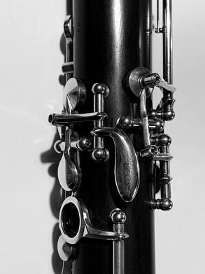 ... werden direkt maximal sieben Tonlöcher abgedeckt. Die übrigen Tonlöcher (je nach Bauweise über 20 Stück bei der B-Klarinette) werden mit Hilfe von gepolsterten Klappen geschlossen.