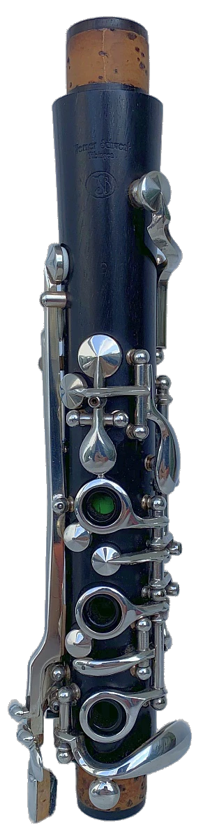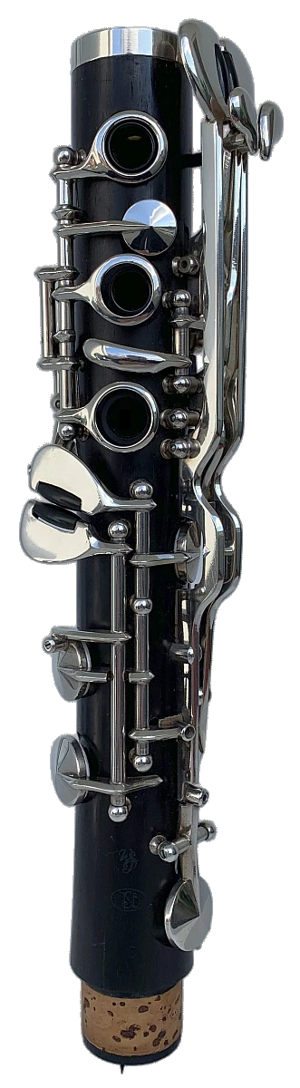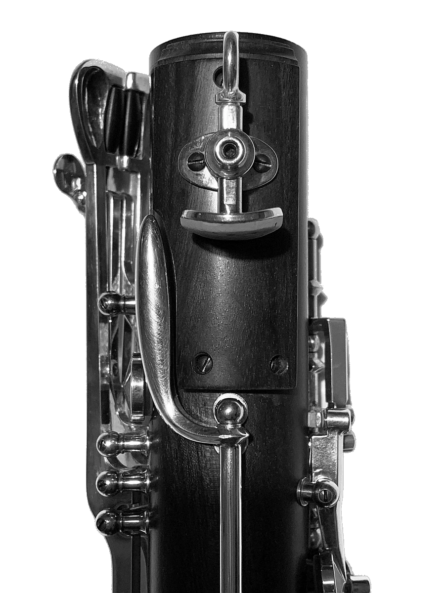 Bei den tiefen, größeren Klarinetten verbindet anstelle der Birne ein sogenannter »S-Bogen« aus Metall Mundstück und Oberstück. (Die Bezeichnung ist von der äußeren Form abgeleitet.)